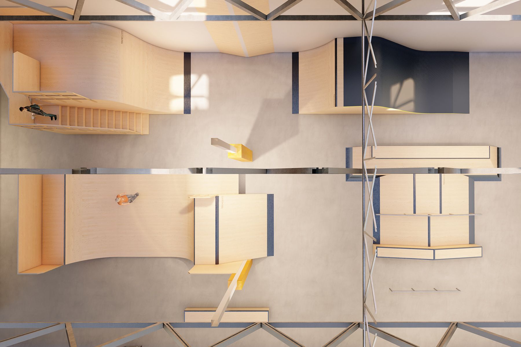 The new indoor skatepark in Radom is a perfect example of a skatepark design that, despite its compact size, contains all the elements necessary for the development of skills in extreme sports. It is a testament to innovative skatepark design. The skatepark is divided into two sections: