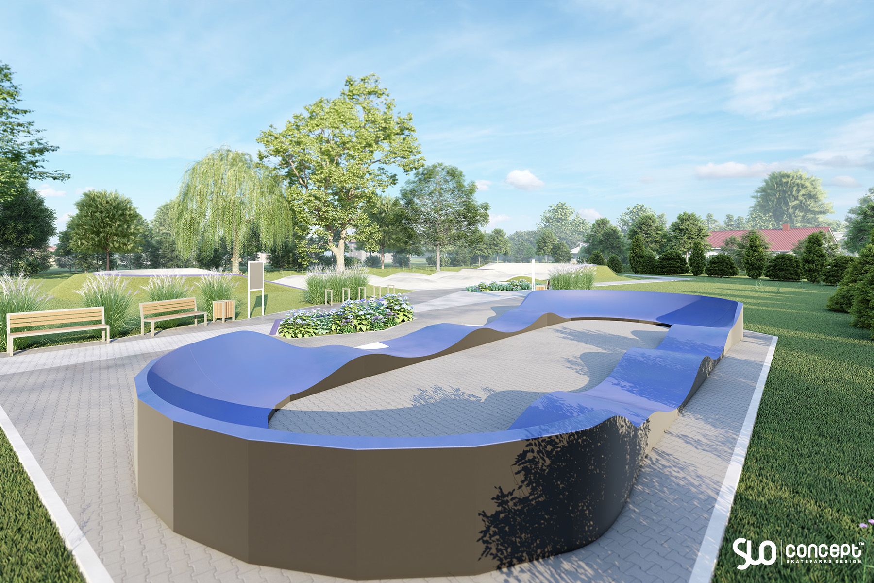 Skatepark med et areal p 777 m2 og Pumptrack med et areal p 505 m2.